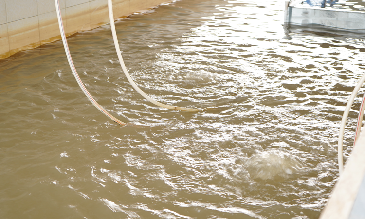刚离开蟹塘的扣蟹,身上沾满了淤泥,必须清洗干净后才能迁入养殖湖区。此时,就轮到净化过滤池登场啦!苏蟹阁养殖基地内的净化过滤池,采用水循环设计,引入天然长江活水,保证水中充足的供氧。