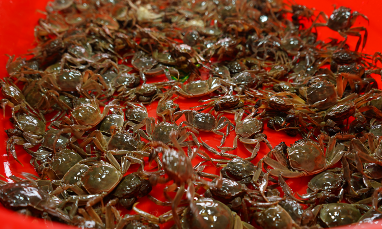 看这一大笼的扣蟹,只只都活力充沛、横行霸道,一看就是身强体壮的好苗子!